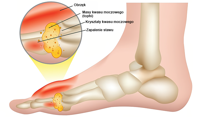 Dna moczanowa (metaboliczne zapalenie stawów) jest spowodowana